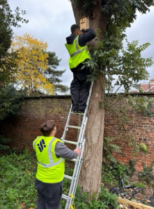 Below: installing bird boxes