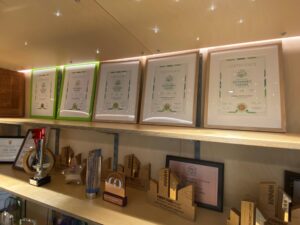 Below: The Ritterwald Certified Sustainable Housing certificate joins a line-up of previous awards