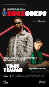 “Whether through mentoring or through my own projects, I know the power of taking action and making a real impact. Nottingham RockCorps gives people the chance to make a difference in their city – and earn their ticket to a concert at the same time. I can’t wait to see everyone come together at Rock City. It’s going to be a moment!”